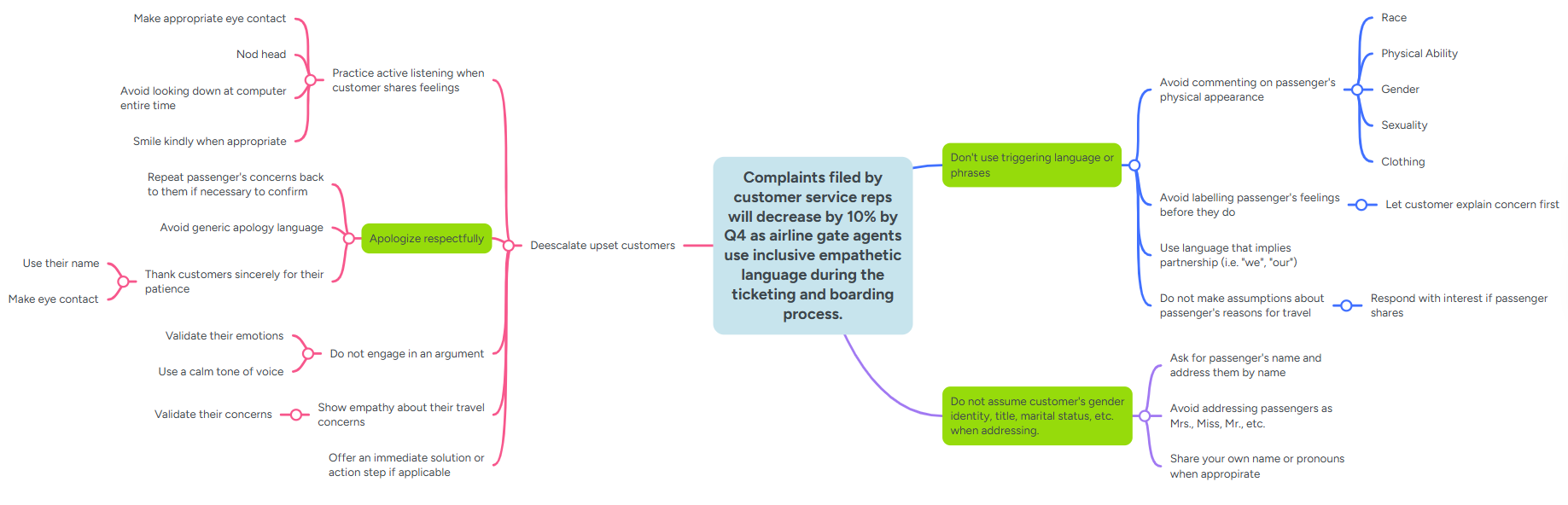 I lead the process of translating some of the most common customer complaints into an action-based framework that learners could take to improve passenger interactions using positive, inclusive language and empathy while shying away from any perceived microaggressions in speech.